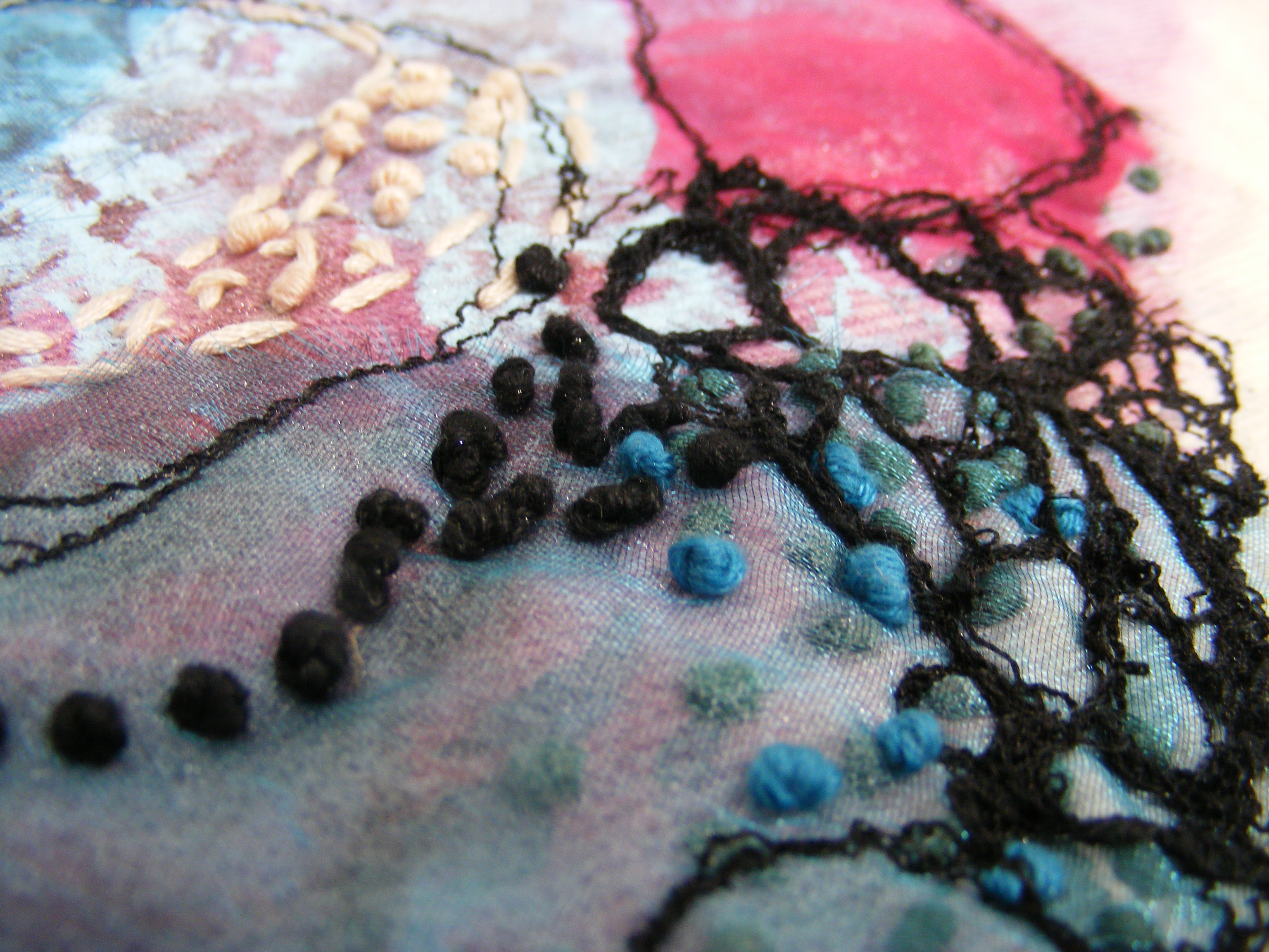 Jane Woodman BA (Hons) Fine Art - Painting I am inspired by nature, photographing and sketching, I develop these images into Abstract Paintings and Textile Art. My approach can be spontaneous, letting the figurative elements disperse into abstraction reinforces the relationship between the real and the imagined. In allowing the process of painting to develop instinctively, by combining both the deliberate and the element of chance, permitting the works to take on a life of their own. The synthesis of these contrasting elements, moving between abstraction and the real, together with my emotional response results in the ultimate vista. My most recent work has combined both painting and textiles to produce mixed media images, that I am continuing to develop further. View all posts by janewoodmandesign4art